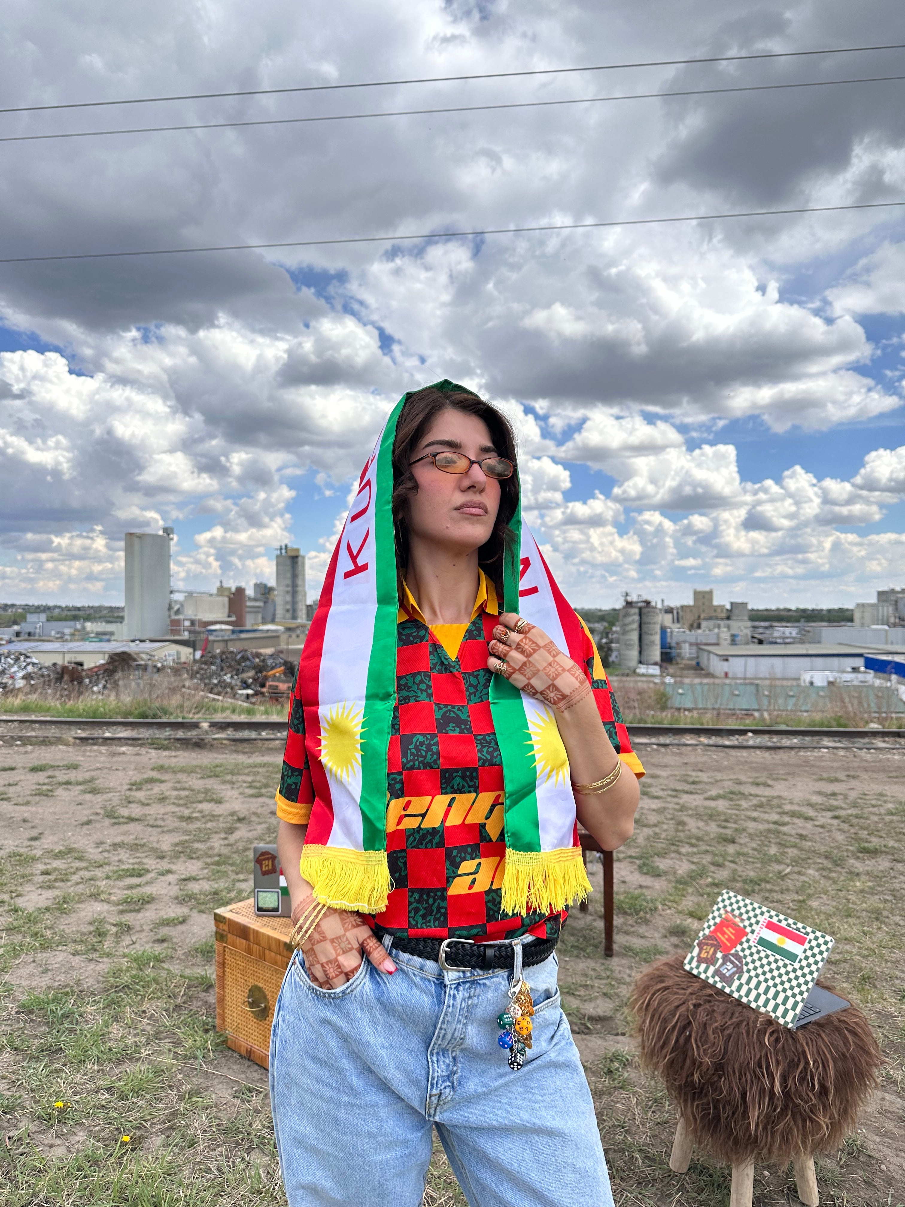 A sash of Kurdistan, red and yellow, white and green. Straight from the homeland to the shoulders of every prideful Kurd who is ready to ignite the fire and let the flames be known. The Kurdistan sash is the perfect accessory for a touch of home for any outfit, celebration or occasion. Wear our BO KURDISTAN jersey with our KURDISTAN SASH to always remember who we are doing this for, or wear it with our BO SHAHIDAN jersey for the perfect combination of love as a Kurd.